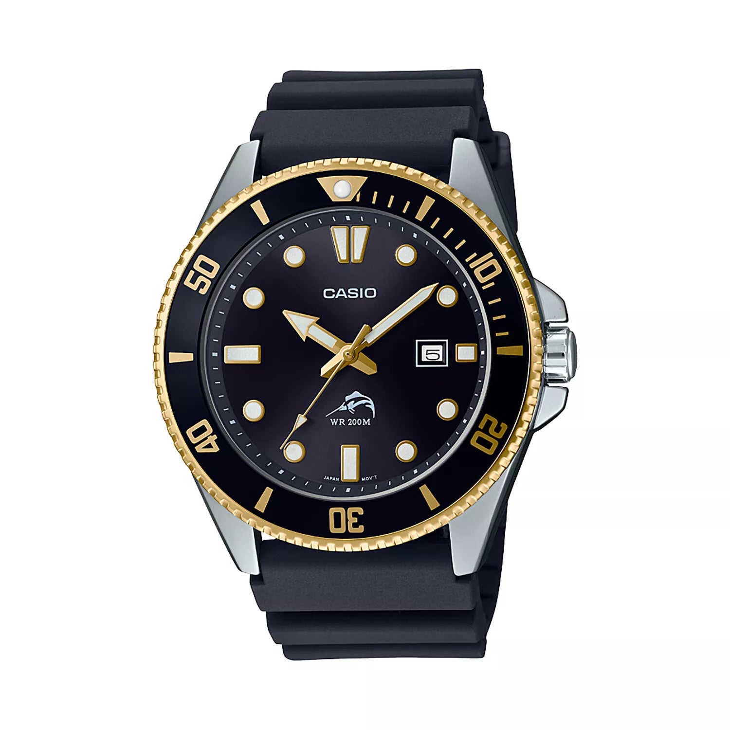 Inspired by the sea, the Casio MDV-106G-1AVCF blends elegance with durability. Featuring a stainless steel case, black resin band, and a rotary bezel with gold accents, it delivers a bold yet timeless look. With 200m water resistance, quartz precision movement, and a date indicator, this watch is built for both style and performance. Perfect for everyday wear or aquatic adventures, it’s a dependable companion that never goes out of style.
