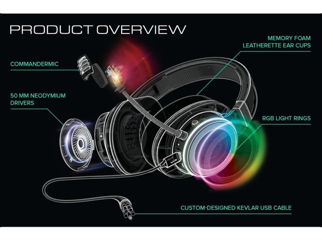 RGB Lighting: Customize earcup lighting with 16.7 million color options via SXFI Control.